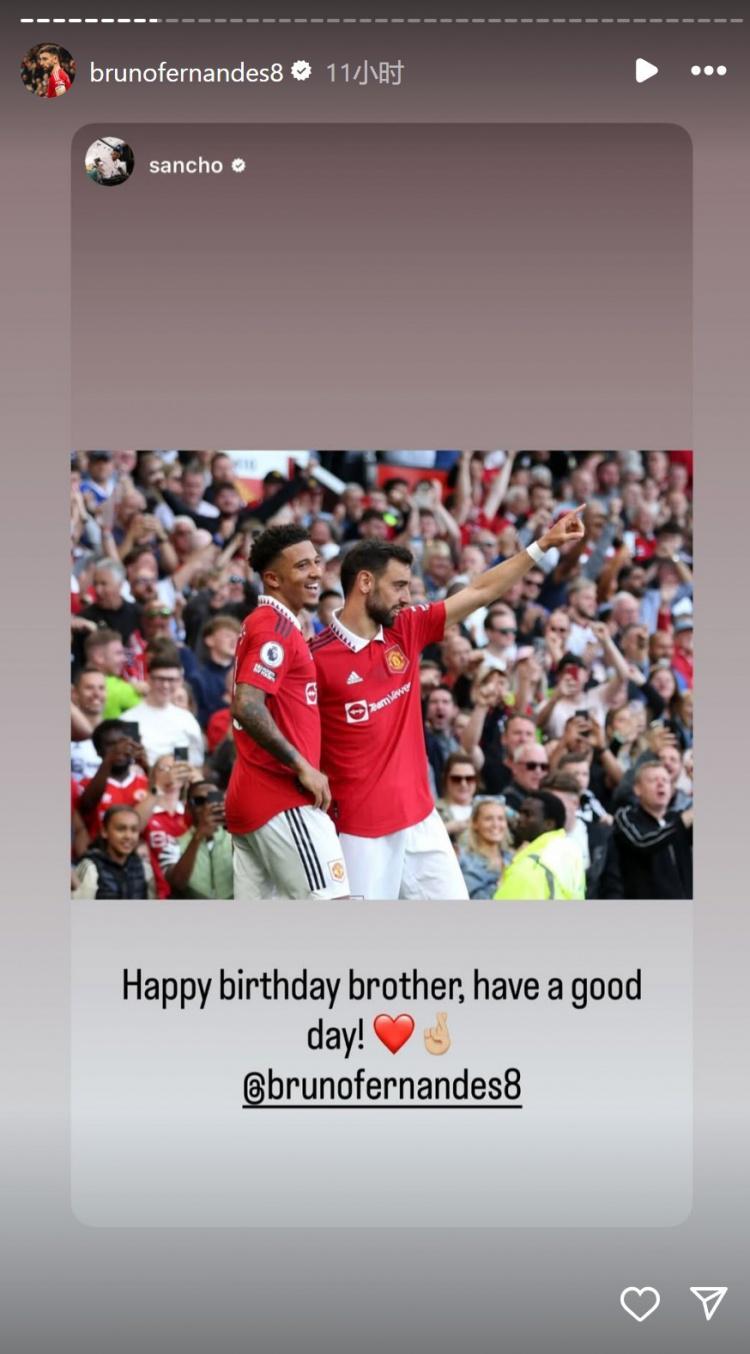 B费转发多人对他的生日祝福,包括德赫亚、桑乔、加纳乔等前队友